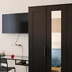 施設は書き物机,座席 とテレビの他に器具でいっぱいの台所を設けています. バスル-ムは,ビデ,個別のトイレ とシャワ-を完備しています.